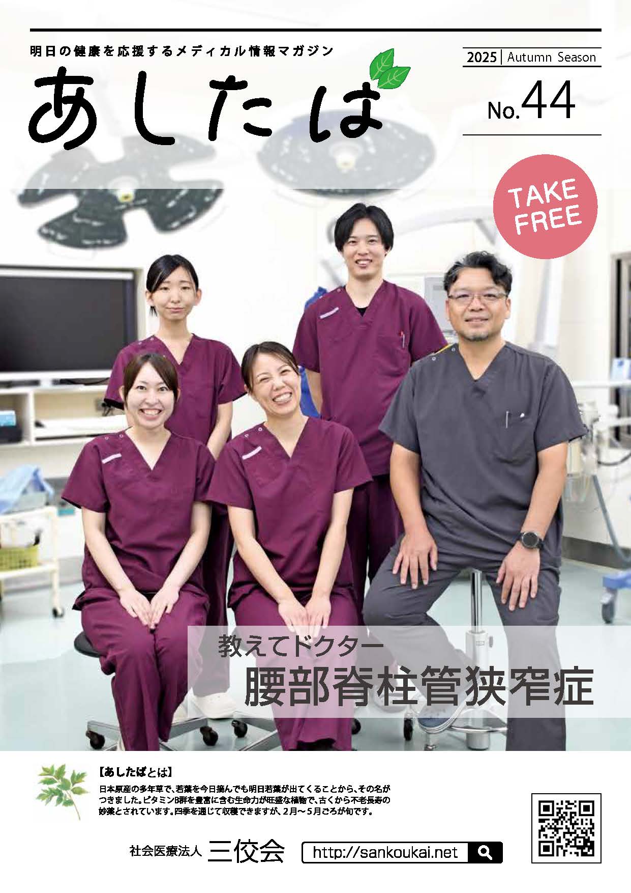 患者さまや連携医療機関など、多くの方々に三佼会を幅広く知っていただくことを目的として、平成17年から機関誌「あしたば」を発刊しています。ぜひ ご覧いただき、ご意見・ご感想などお聞かせ下さい。