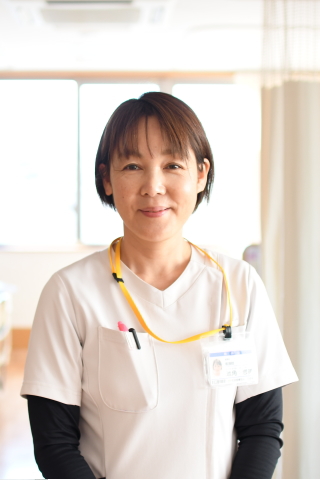そんな中、2年前にサブマネージャーの話を頂いたときには、自分の能力以上の役割であるという不安・恐怖もありましたが、一緒に悩み・解決する方法を考えてくださる上司や同僚のサポート体制があり、拝命することになりました。昨年度は、ファーストレベル研修を受講し、人材育成の視点で「人材は宝である」ことを学びました。管理者として、スタッフを大事にする先には、患者様へのケアに繋がります。その為、私が現場で意識していることは、スタッフの話や行動を自分の目や耳で聞くことです。事実を知るためには、スタッフが何を考え、行動しているのかを理解しようとすることが私の役割であると思っています。サブマネージャーとしてはまだまだ駆け出しで、スタッフからいじられることも多い私ですが、それも私にとってはコミュニケーションの一つです。自分の弱みを強みに変え、日々スタッフと向き合う努力をしています。